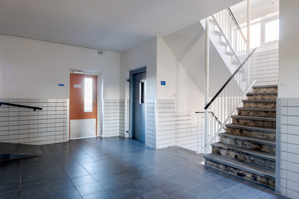 Deze maisonnette is verdeeld over twee woonlagen en maakt deel uit van een bestaand appartementencomplex met 2 liften. Het gebouw heeft een afgesloten entree met intercom.