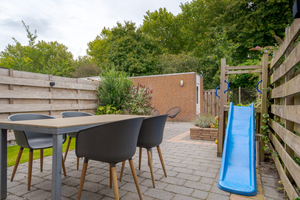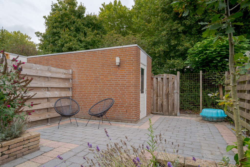 Dankzij de ligging op het noordoosten is er volop ochtend- en middagzon. In de vrijstaande stenen berging, voorzien van elektra, is voldoende ruimte voor fietsen en tuingereedschap.