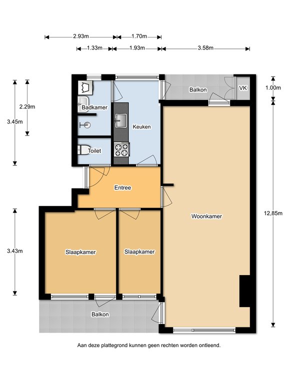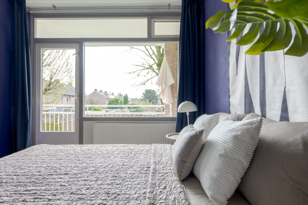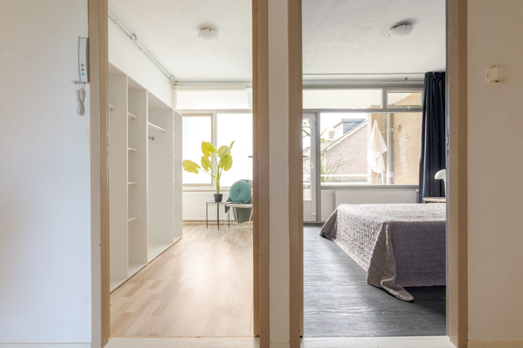 De twee slaapkamers zijn gesitueerd aan de balkonzijde en hebben een prettige maatvoering. Daarmee is er ruimte voor een comfortabele hoofdslaapkamer en een extra kamer die ook goed gebruikt kan worden als werk-, logeer- of hobbykamer. Een van de slaapkamers heeft directe toegang tot het balkon, wat zorgt voor een fijne verbinding met buiten.