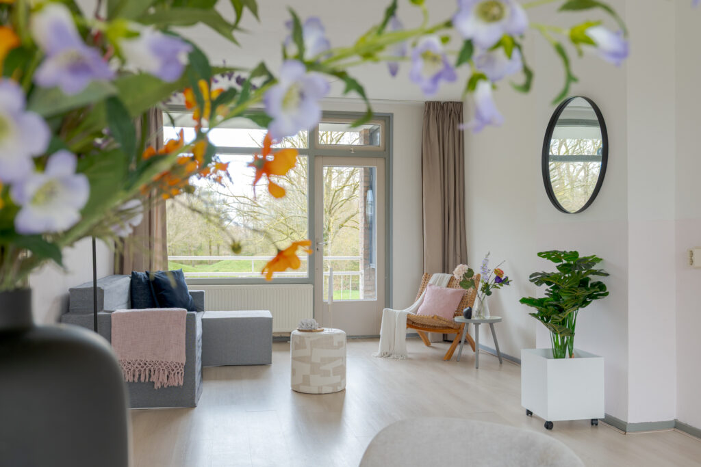 Licht wonen in Holtenbroek met vrij uitzicht en twee balkons!