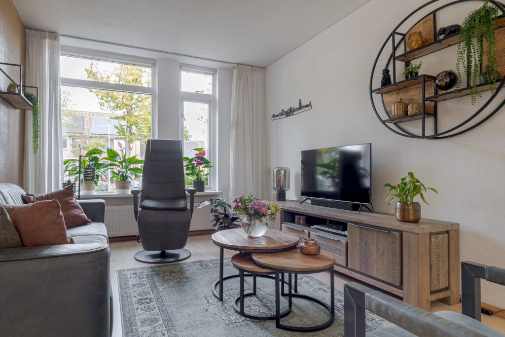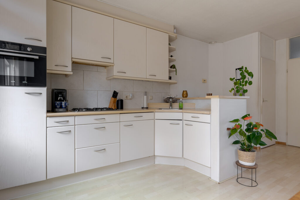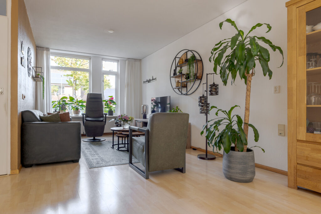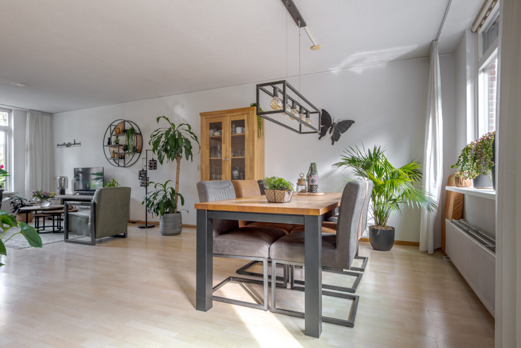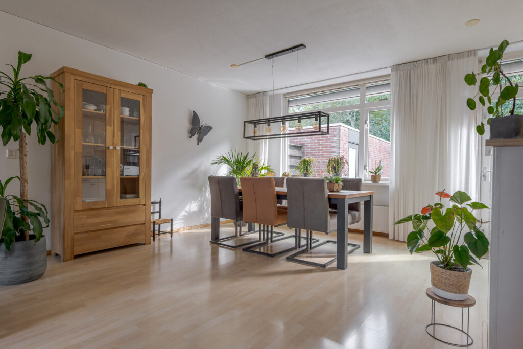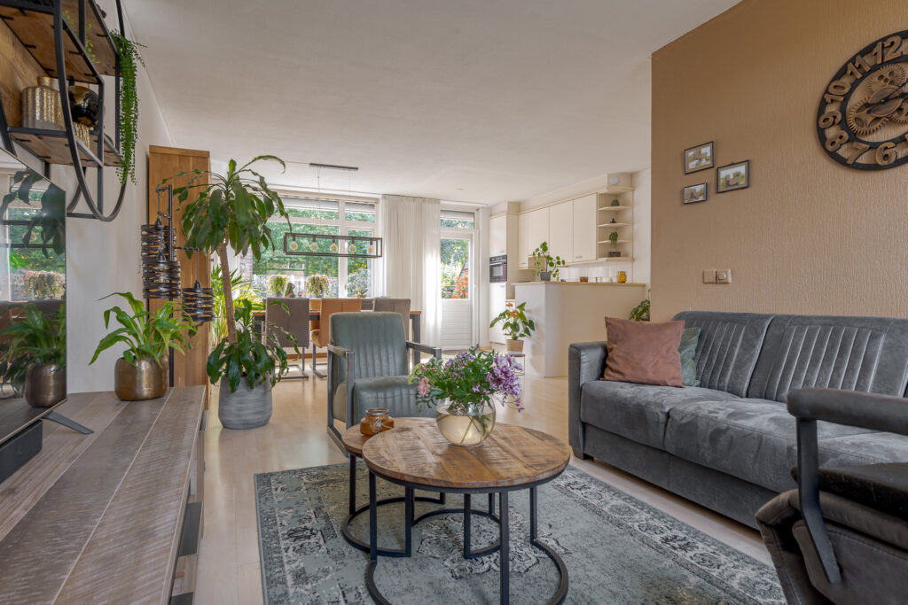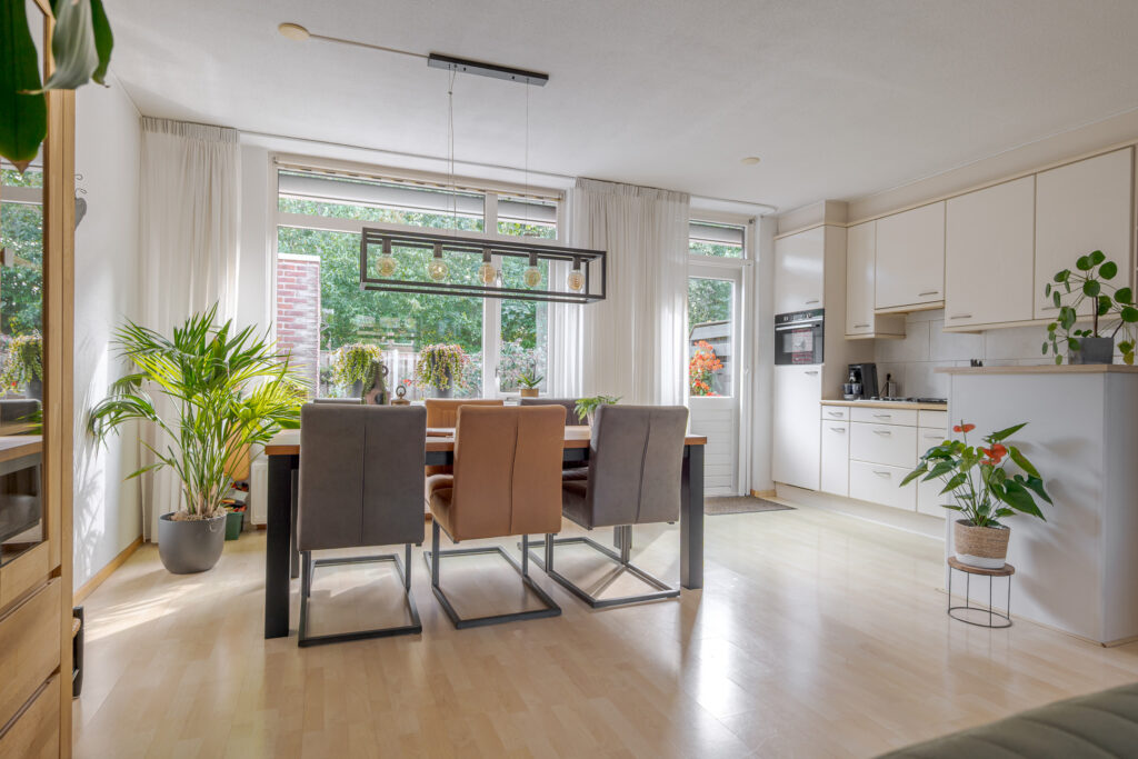 De woning heeft een verzorgd en klassiek gevelbeeld met een karakteristiek zadeldak en grote ramen aan de voorzijde. De voortuin geeft privacy en een prettige eerste indruk. Via de entree met meterkast, toilet en trapopgang (met traplift), betreedt u de ruime woonkamer, die zich uitstrekt over de volledige diepte van de woning. De grote raampartijen aan voor- en achterzijde zorgen voor een fijne lichtinval, waardoor de ruimte helder en uitnodigend aanvoelt. Aan de achterzijde bevindt zich de halfopen keuken in hoekopstelling, deze is voorzien van diverse inbouwapparatuur. Dankzij de opstelling is veel werk- en opbergruimte. Vanuit de keuken is er directe toegang tot de tuin.