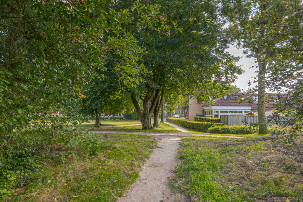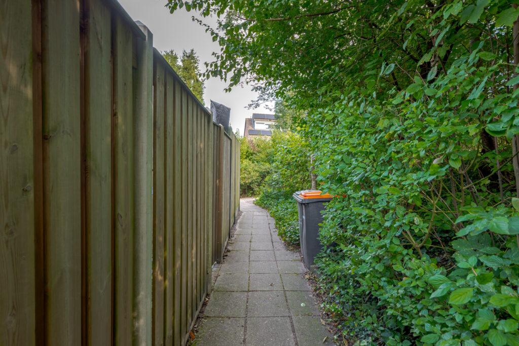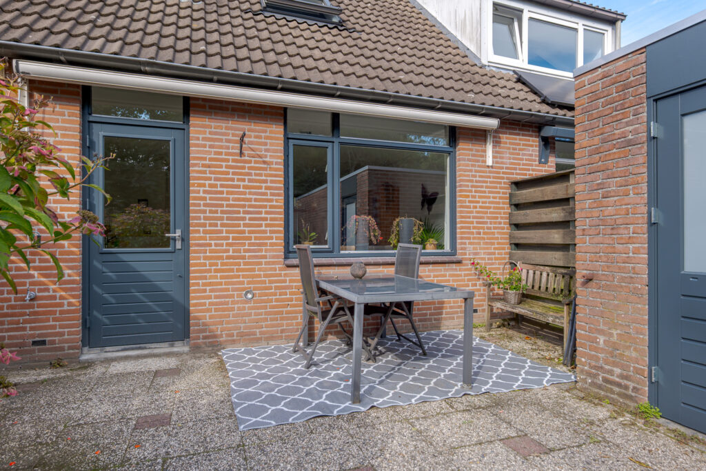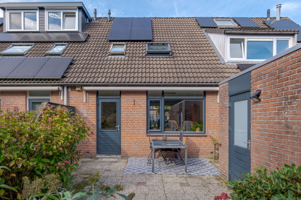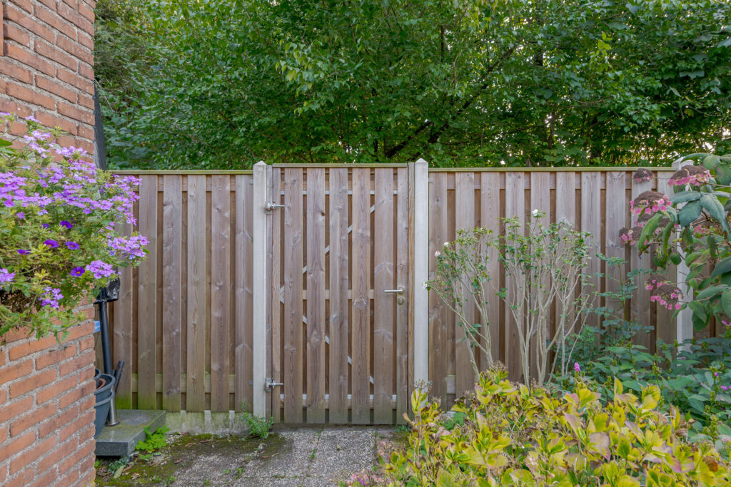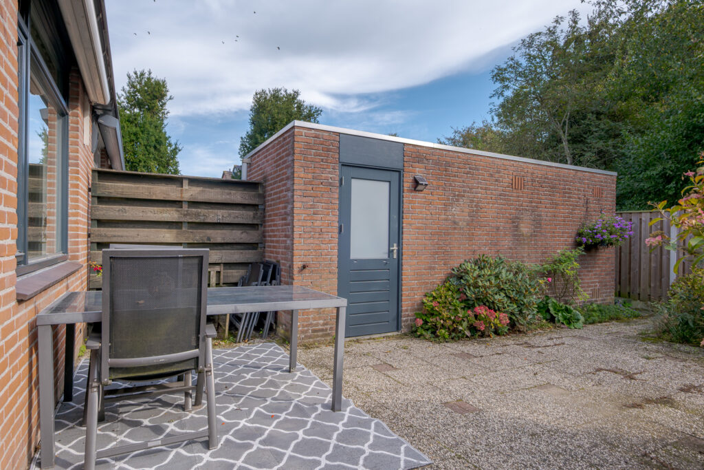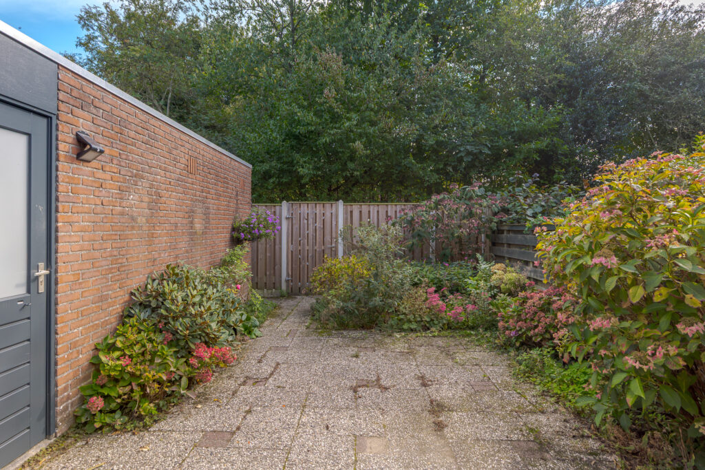De achtertuin is een verrassend groene en beschutte plek met veel privacy dankzij de ligging tegen een bomenstrook. De tuin is onderhoudsvriendelijk aangelegd met een combinatie van bestrating en borders, en beschikt over een vrijstaande stenen berging en een handige achterom. Dankzij de zuidligging kun je hier vrijwel de hele dag van de zon genieten!