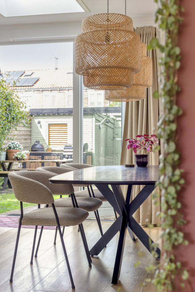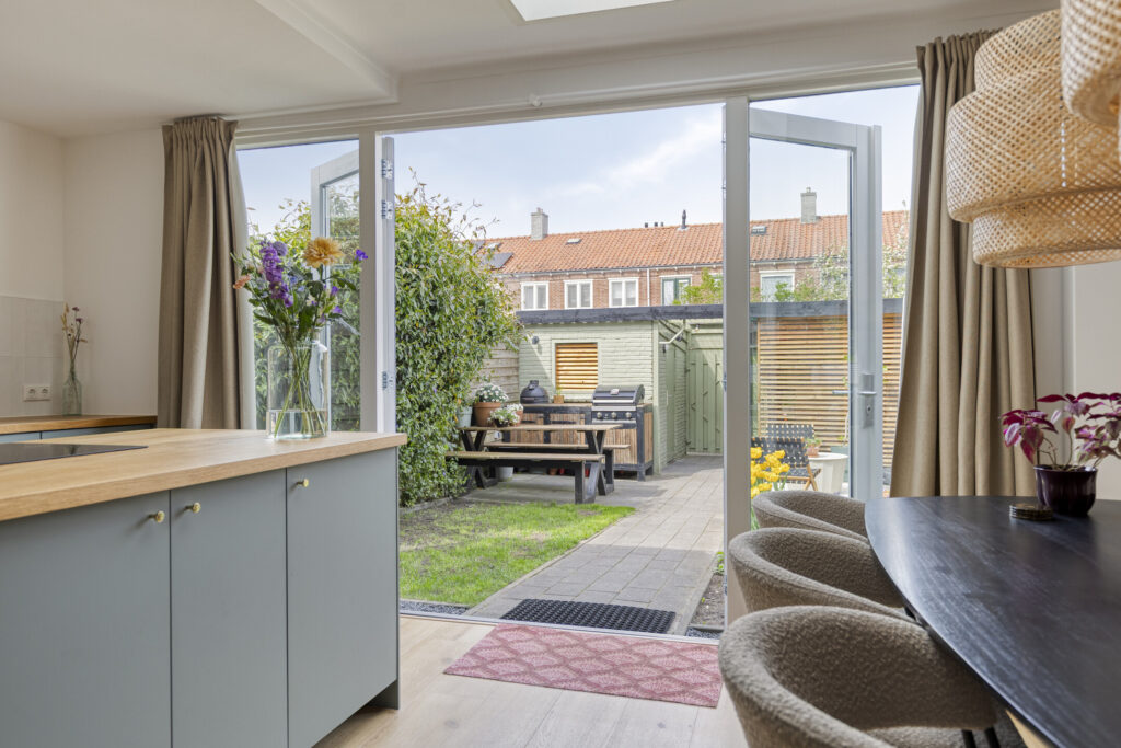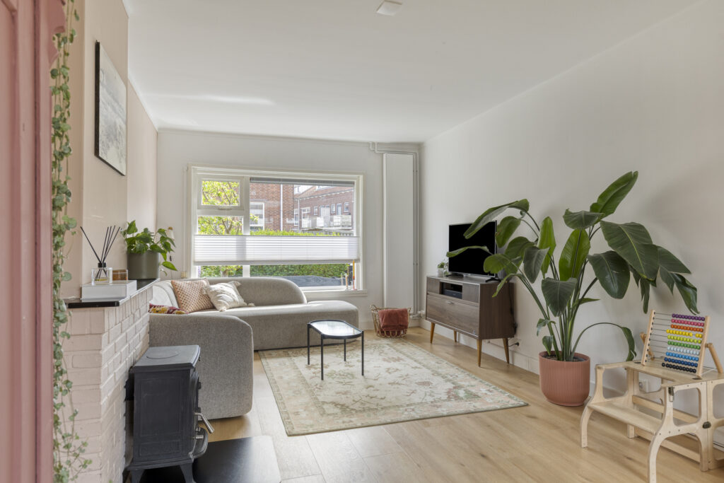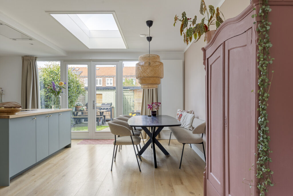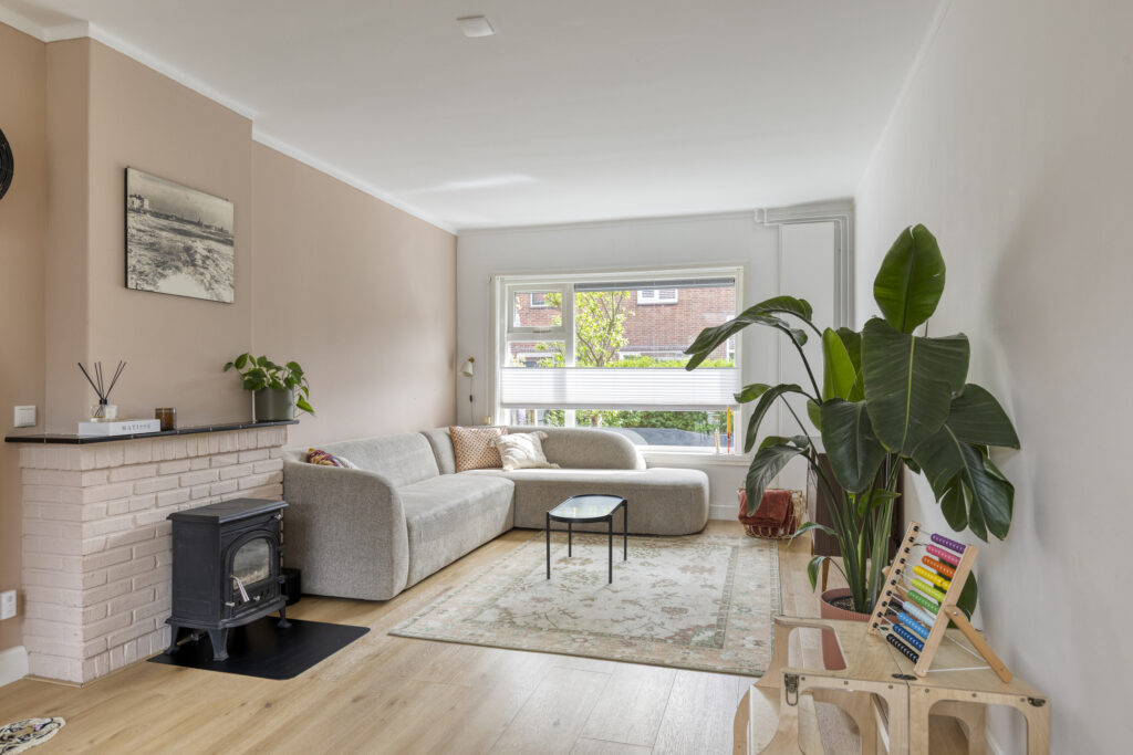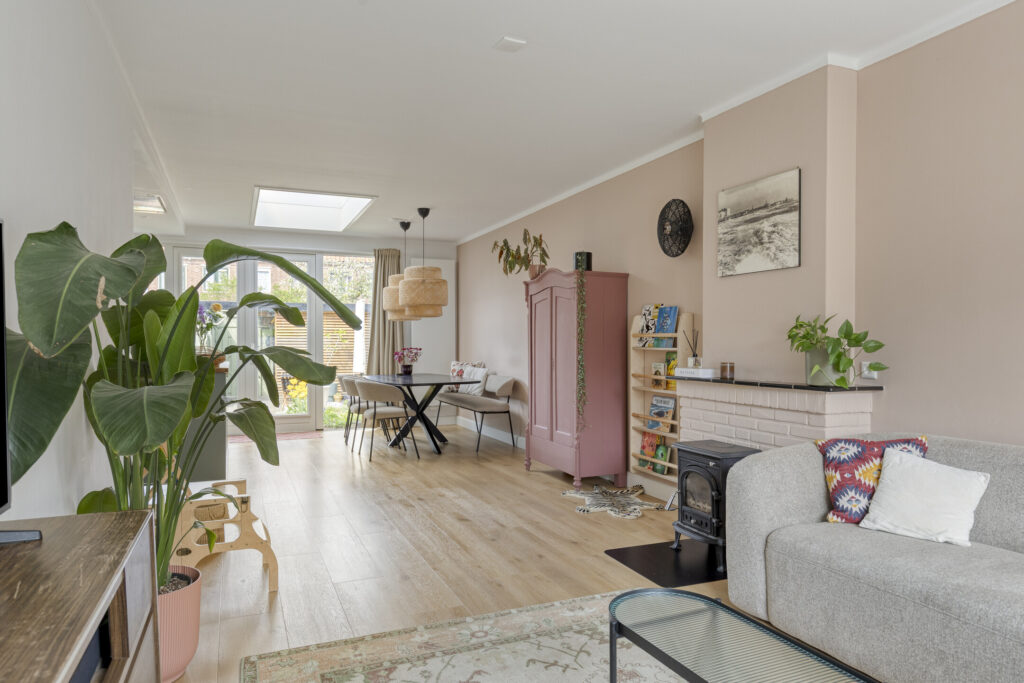 In een rustige straat treft u deze perfect afgewerkte woning met voortuin waar u verwelkomd wordt door de weelderige Blauwe Regen. Bij binnenkomst in de hal treft u direct de verzorgde afwerking die in de gehele woning is doorgevoerd. Hier bevinden zich het kleurrijke toilet, de trapopgang en een praktische trapkast. Vanuit de hal loopt u door naar de leefruimte, waar direct de ruimtelijkheid en het licht opvallen. Dankzij de uitbouw aan de achterzijde met mooie lichtkoepel is er een royale woonkamer ontstaan, met volop plek voor zowel een zit- als eetgedeelte. De houtkachel (ter overname) zorgt hier voor extra sfeer en warmte, terwijl de openslaande deuren een mooie verbinding met de gezellige tuin creëren.