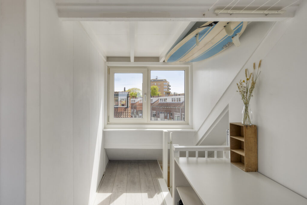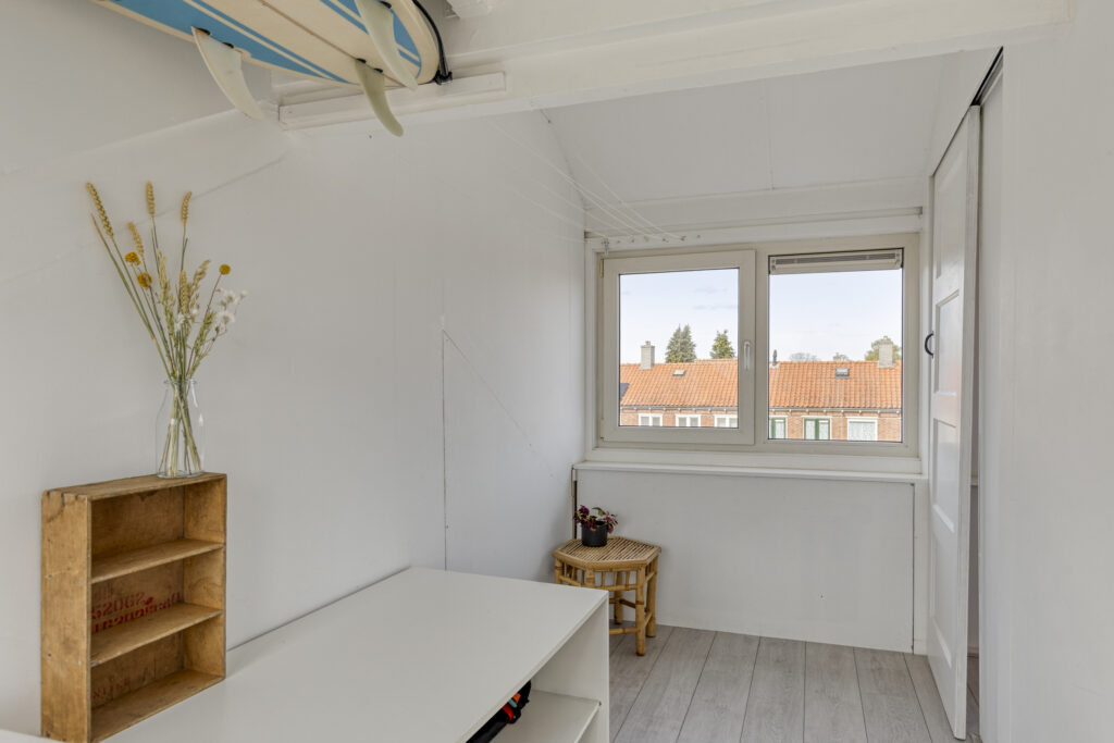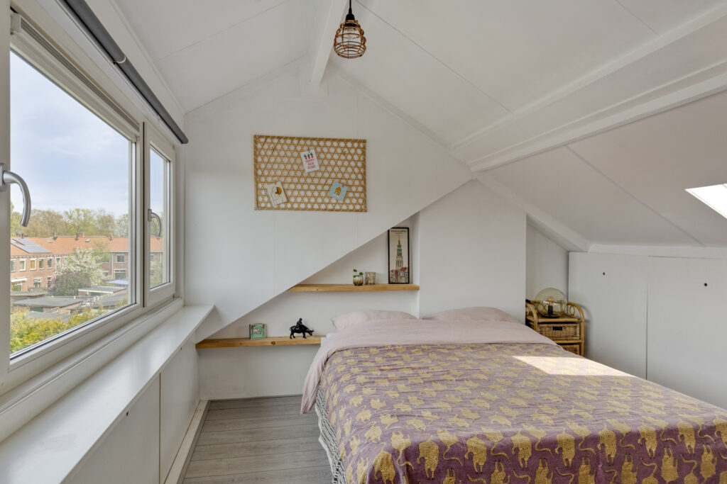 Via een vaste trap bereikt u de tweede verdieping. Hier bereikt u via een handige schuifdeur een derde slaapkamer met dakkapel, wat zorgt voor extra ruimte en licht. Daarnaast is er op de overloop ruimte voor de cv-opstelling en is er praktische bergruimte achter de knieschotten aanwezig.