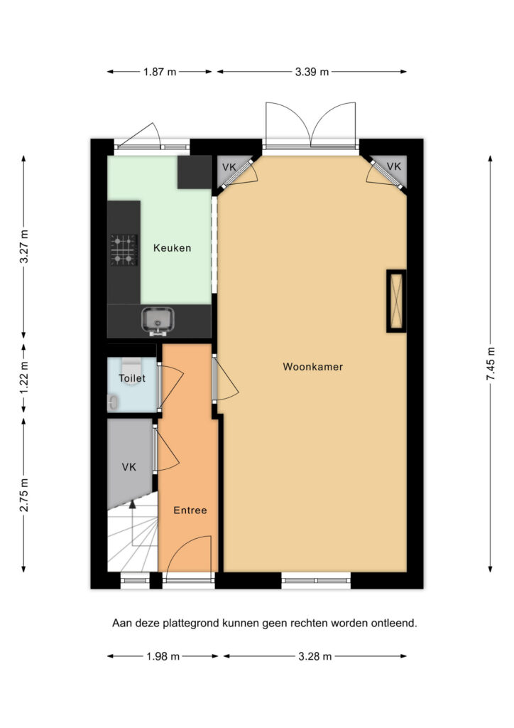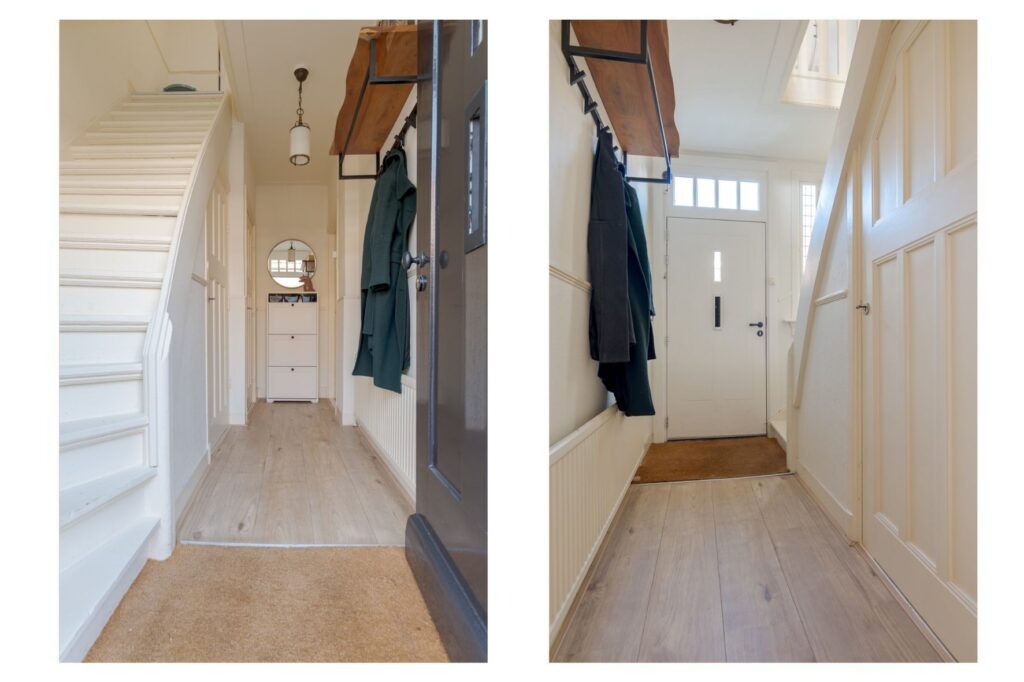 Via de entree betreedt u de hal met trapopgang naar de verdieping, een trapkast en het toilet. Vanuit de hal loopt u door naar de woonkamer. De woonkamer strekt zich uit over de volledige diepte van de woning en voelt dankzij de grote raampartijen aan zowel de voor- als achterzijde prettig licht en ruimtelijk aan. De combinatie van daglicht en de doorlopende zichtlijn naar de tuin zorgt voor een open en aangename sfeer in huis.