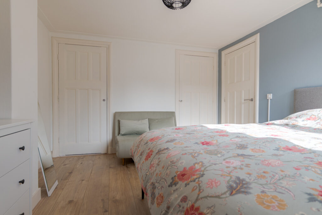 Op de eerste verdieping komt u op de overloop, die toegang geeft tot twee slaapkamers en de badkamer. Beide slaapkamers zijn goed bemeten. Daarnaast zijn er meerdere vaste kasten aanwezig die zorgen voor praktische opbergruimte.