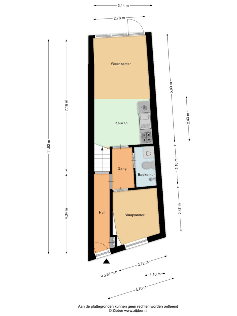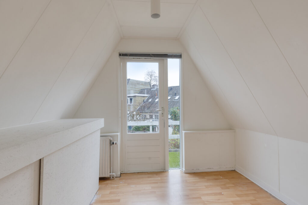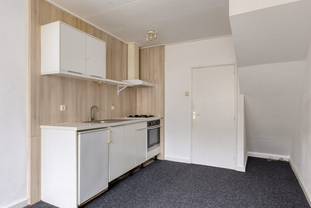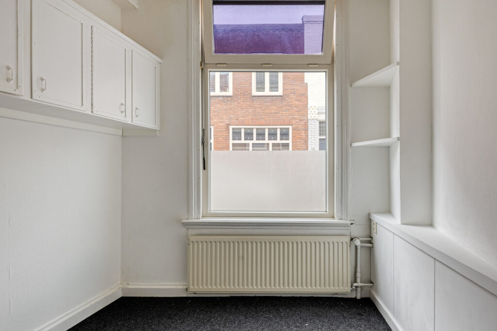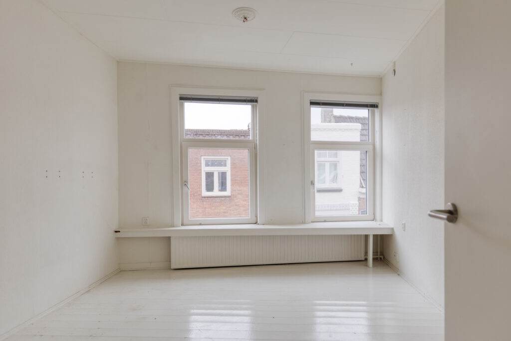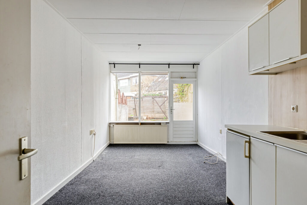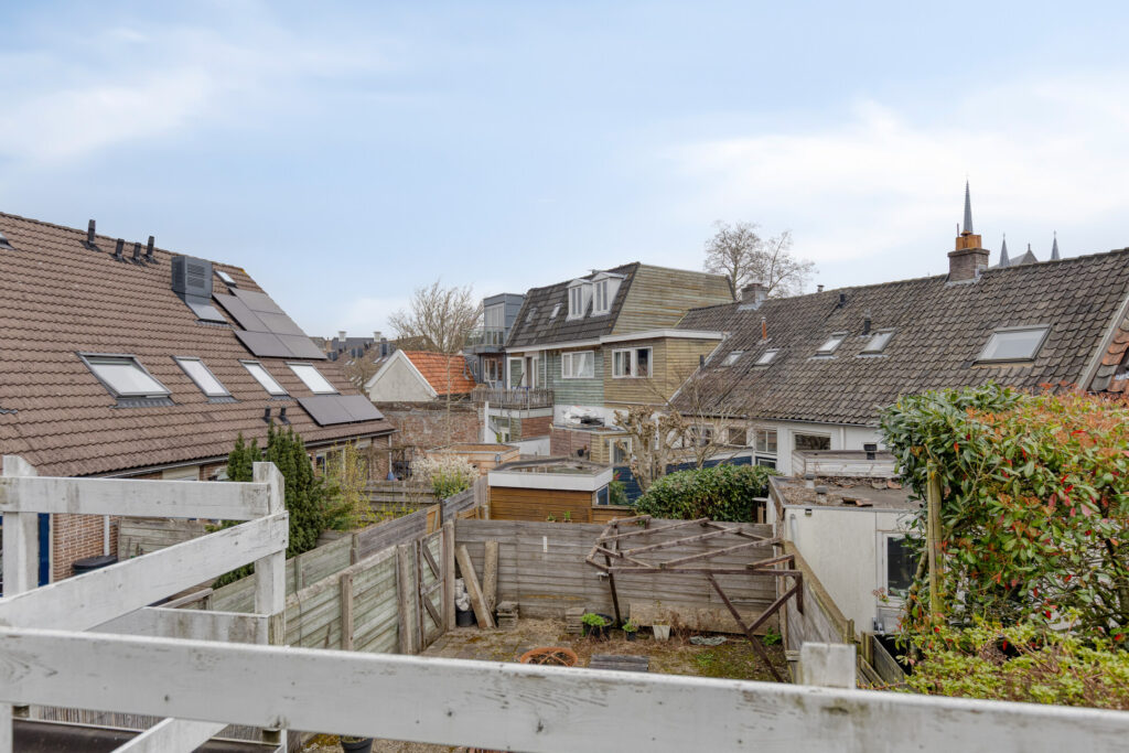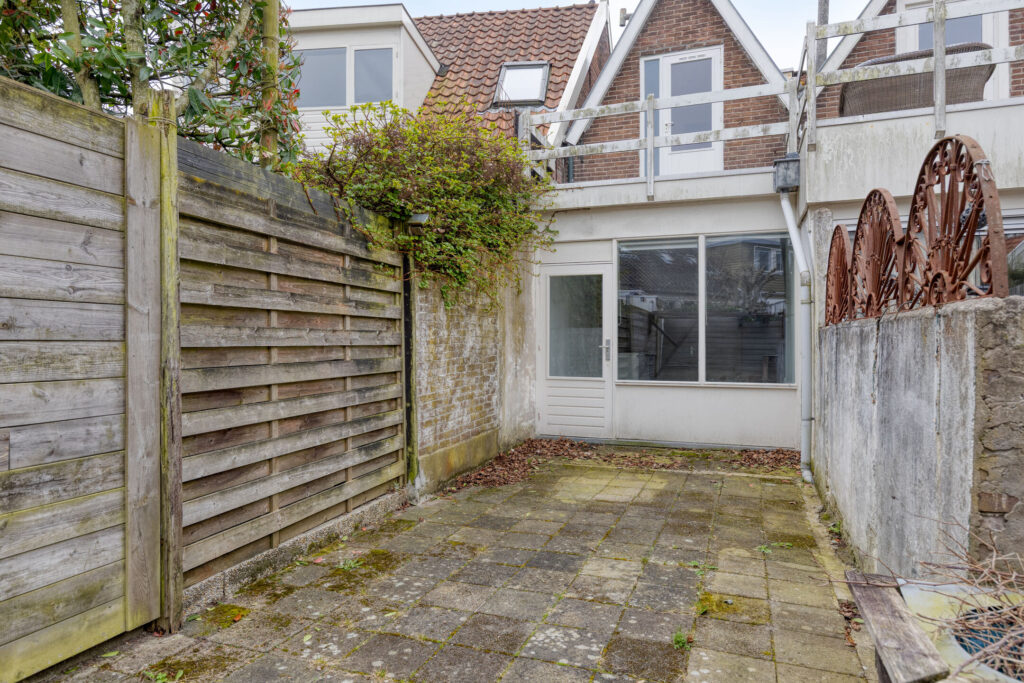 Achter de voordeur komt u binnen in de hal, met aan de voorzijde direct een slaapkamer. Via de gang bereikt u de badkamer op de begane grond en vervolgens de keuken, die in open verbinding staat met de woonkamer aan de achterzijde. Juist deze indeling biedt kansen: afhankelijk van uw woonwensen kunt u hier onderzoeken hoe de leefruimte anders kan worden ingericht en beter op elkaar kan aansluiten. De woonkamer ligt aan de tuinzijde en heeft direct contact met buiten, wat een goede basis vormt voor een prettige leefruimte. De achtertuin is circa 12 meter diep en gelegen op het noordoosten, waardoor u beschikt over een verrassend diepe buitenruimte midden in de stad. De tuin vraagt aandacht, maar biedt juist daardoor volop ruimte om opnieuw vorm te geven aan terras, groen of bergmogelijkheden.