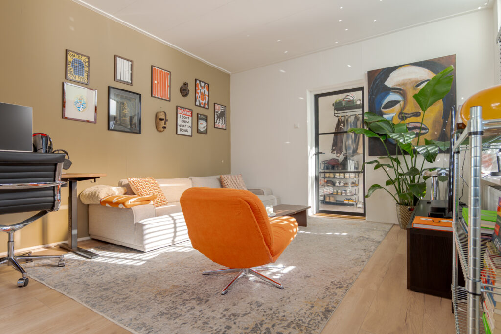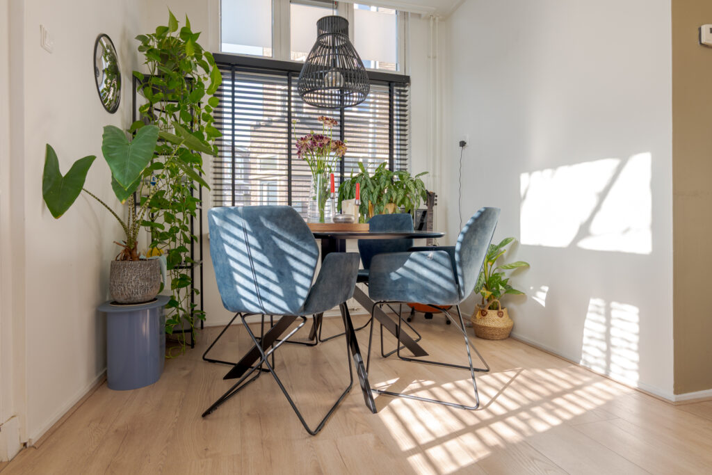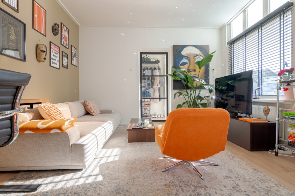 Via de hal, die toegang biedt tot alle vertrekken, komt u in de woonkamer. Dankzij de grote raampartijen geniet u hier van veel daglicht, wat zorgt voor een prettige en open sfeer. Er is volop ruimte voor een comfortabele zithoek en een eettafel. Aan de straatzijde bevindt zich een deur op het zuiden, waar u op zonnige dagen heerlijk kunt genieten van het buitenleven.