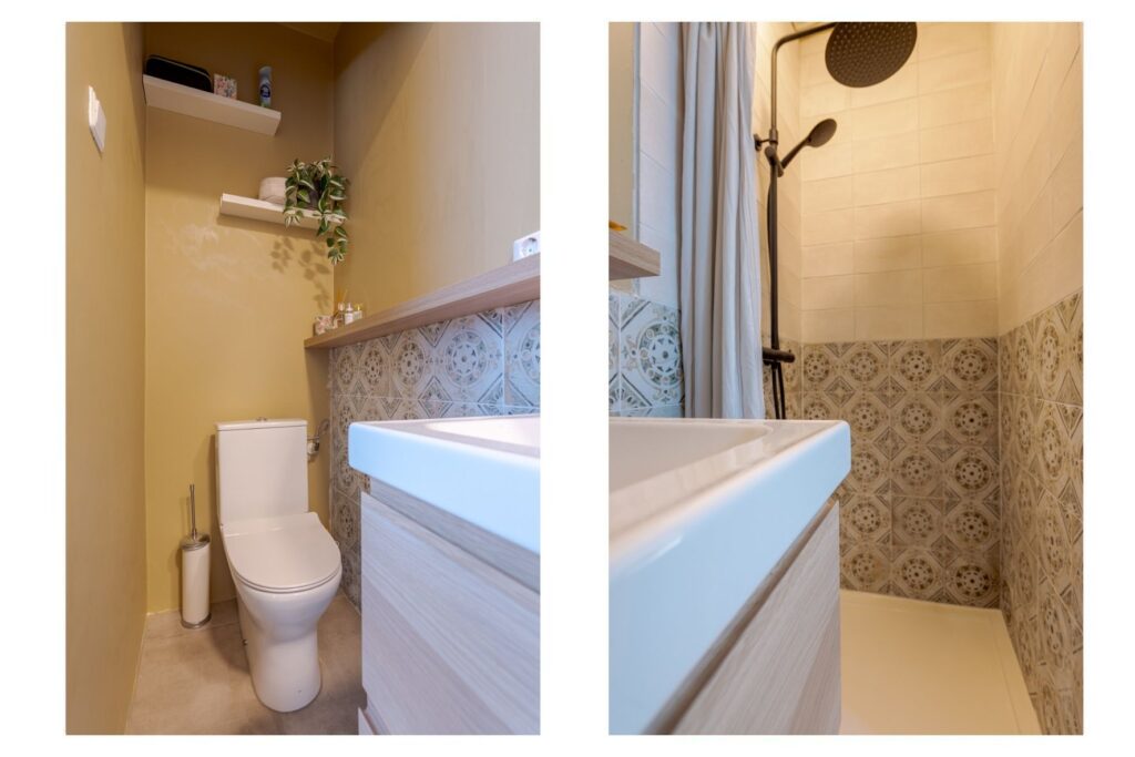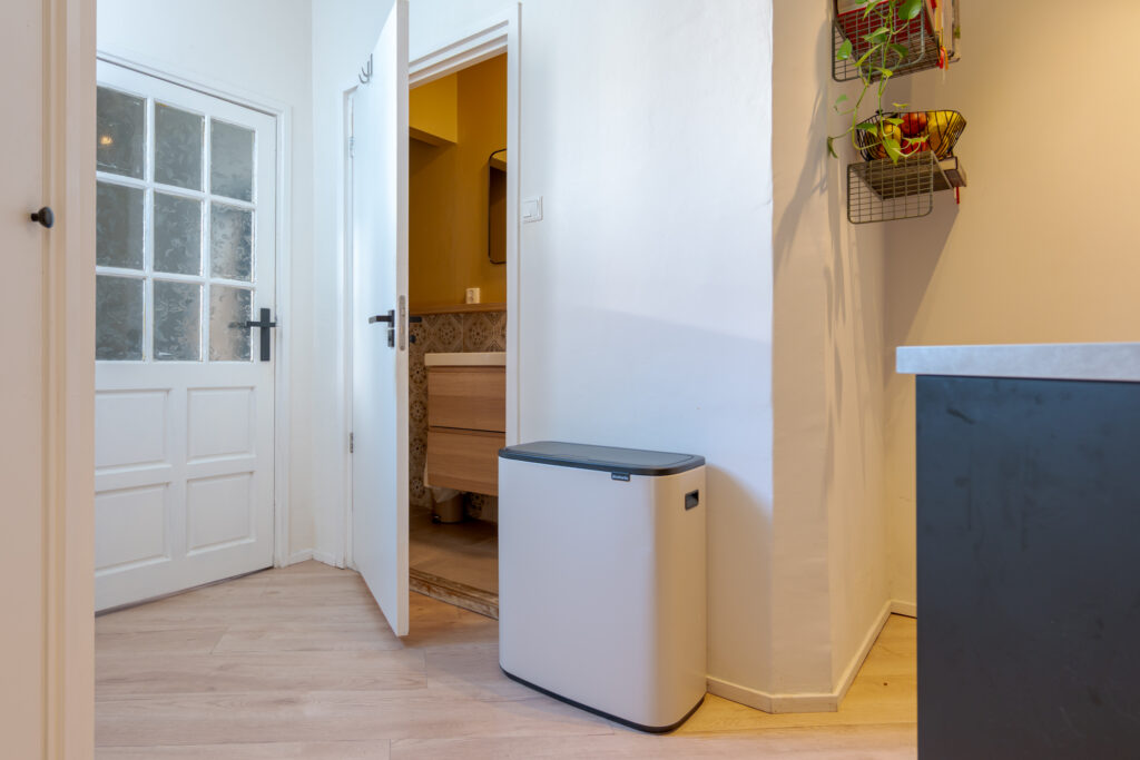 De keuken is in 2021 volledig vernieuwd en praktisch ingedeeld. Met een moderne uitstraling en de benodigde inbouwapparatuur is dit een fijne plek om te koken. Ook de badkamer is recent in een nieuw jasje gestoken, de nieuwe tegels en kleuren geven de ruimte een mediterraans tintje. De badkamer beschikt over een inloopdouche, wastafel en toilet. De cv-ketel en de aansluiting voor de wasmachine zijn netjes weggewerkt in een aparte kast naast de keuken.