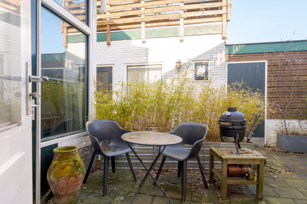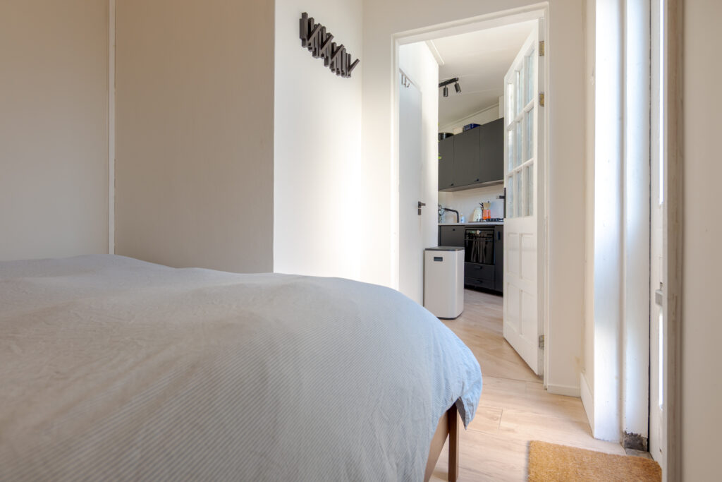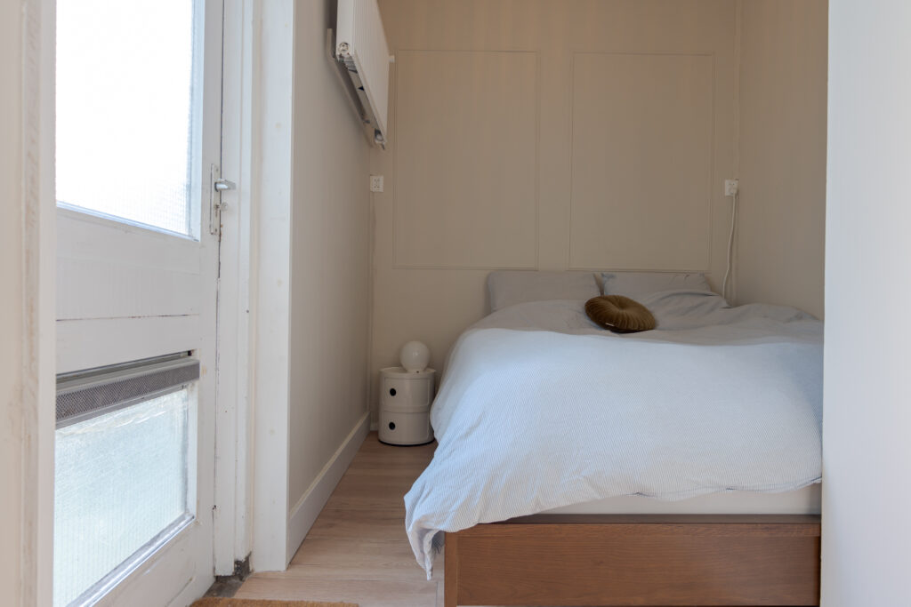 De slaapkamer ligt aan de achterzijde van de woning en biedt directe toegang tot de stadstuin. Deze buitenruimte is gelegen op het oosten, waardoor u hier in de ochtend heerlijk in de zon kunt zitten met een kop koffie. De tuin beschikt over een achterom en een stenen berging. Zowel de tuin als de berging worden gedeeld met de buurman.