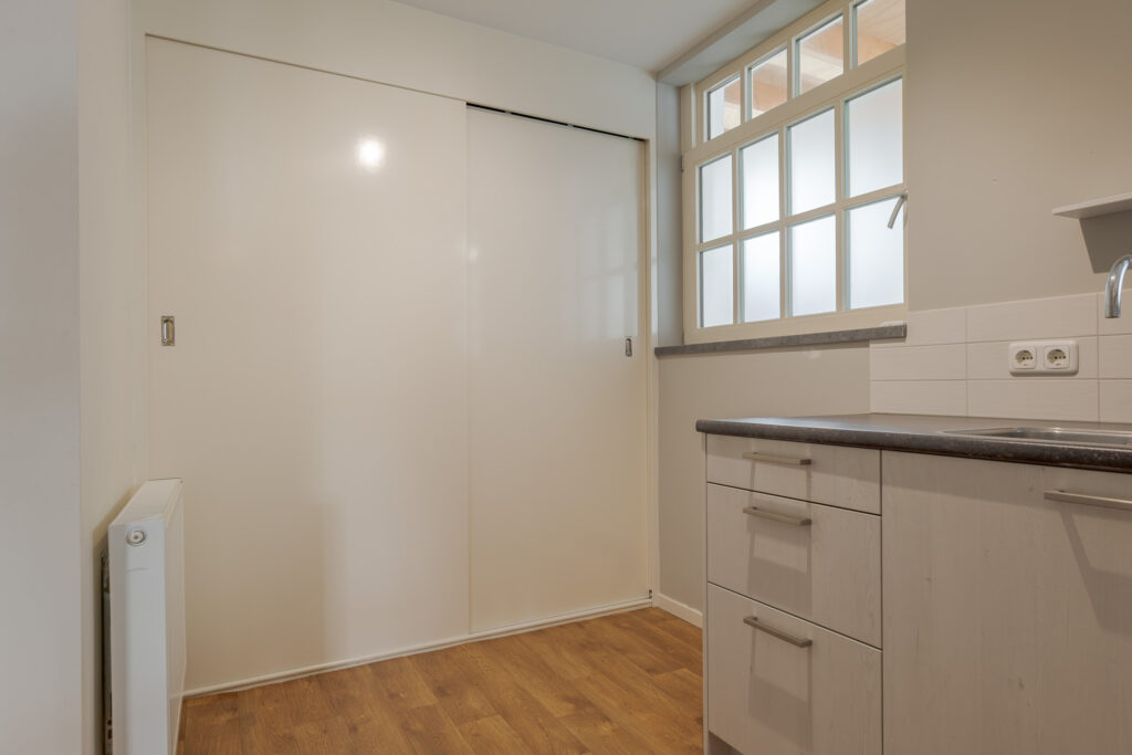 De woning beschikt over een woonkamer met directe toegang tot de half open keuken, die voorzien is van een kookgedeelte met gaskookplaat, spoelbak en voldoende kastruimte. Via het centraal gelegen halletje met toilet heb je toegang tot de overige vertrekken.