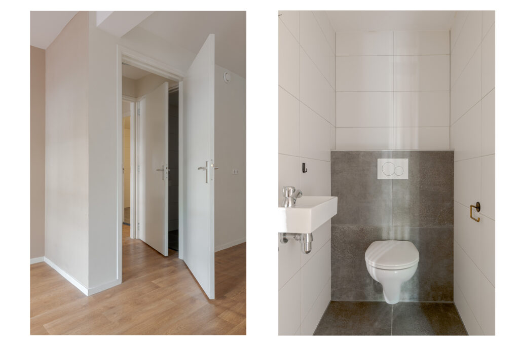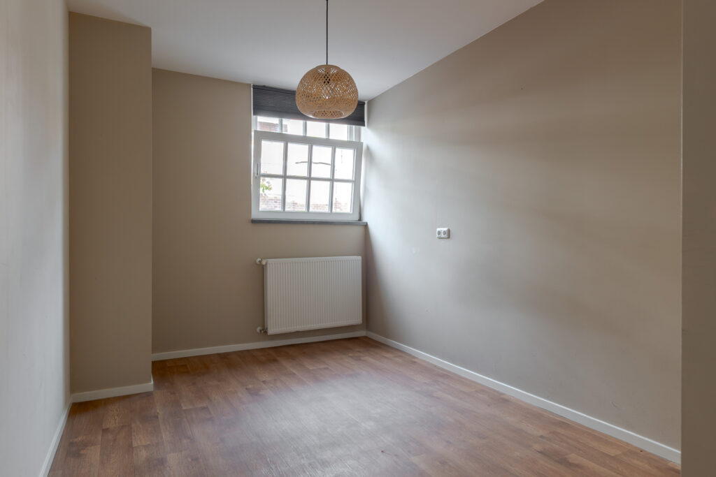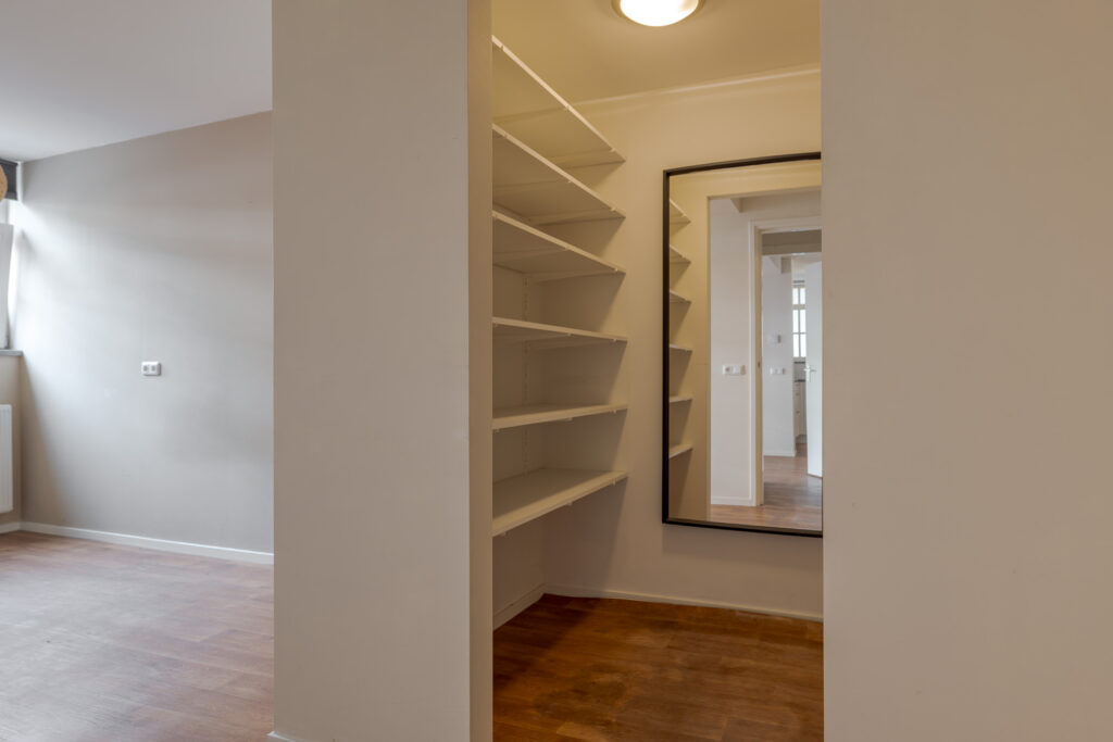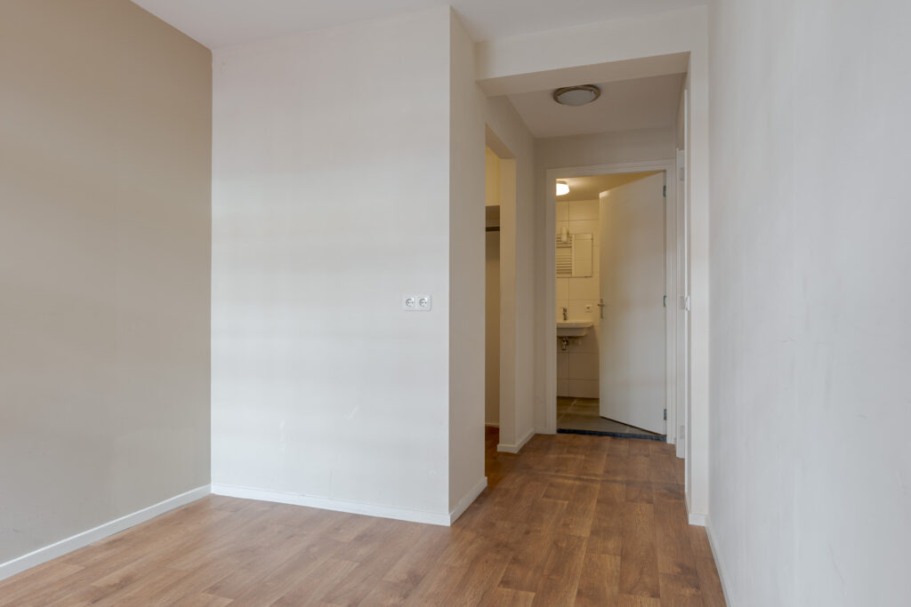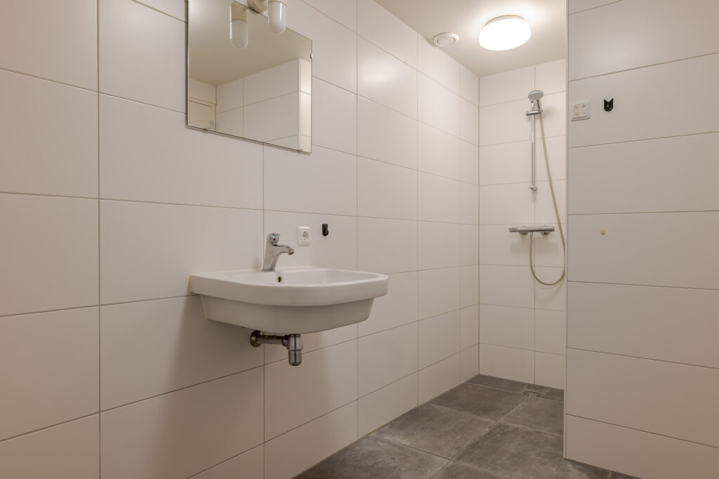 De royale slaapkamer ligt aan de rustige achterzijde van de woning en staat in verbinding met een praktische inloopkast. De badkamer is uitgerust met een wastafel, inloopdouche en een wasmachineaansluiting.