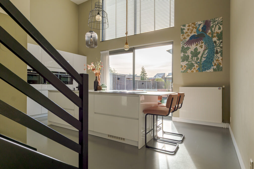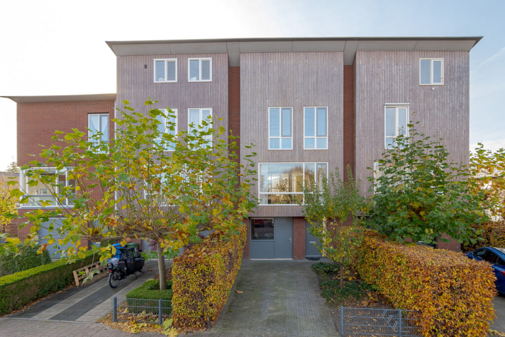 De woning zelf straalt direct sfeer en warmte uit. De met hout betimmerde gevel met grote raampartijen geeft een uitnodigende eerste indruk. Binnen wacht een speelse indeling die vanaf het eerste moment verrast. Verschillende niveaus zorgen voor een dynamisch woongevoel. De vide vormt het kloppend hart van het huis en laat het daglicht rijkelijk binnen. Hierdoor voelen de keuken en woonkamer heerlijk licht en ruimtelijk aan.