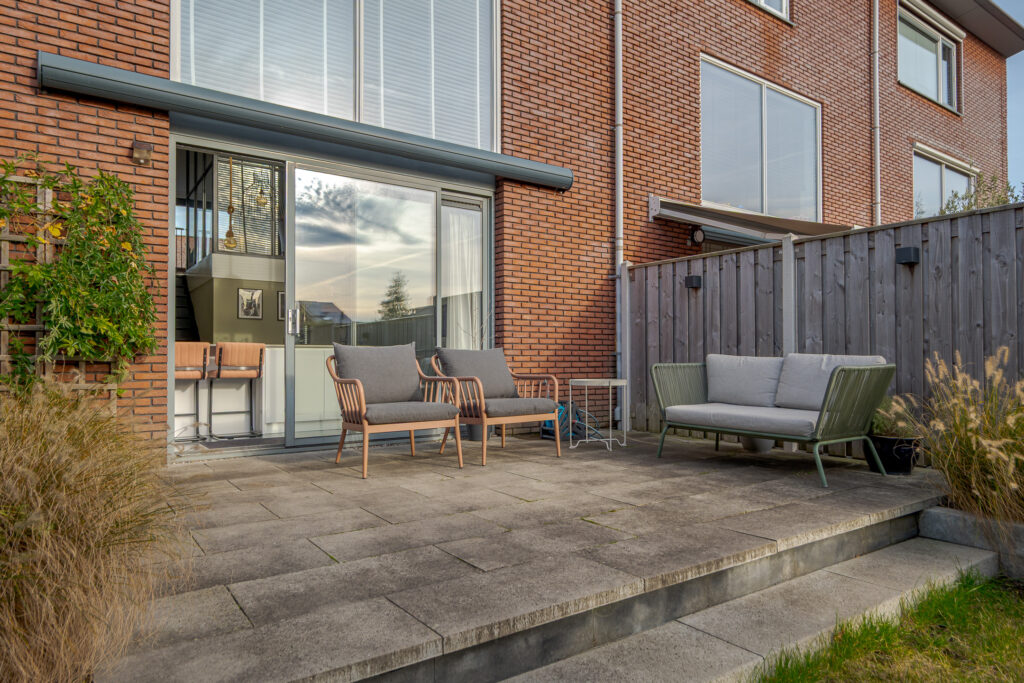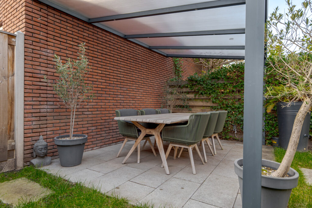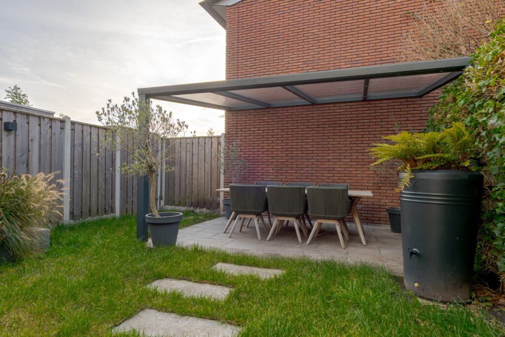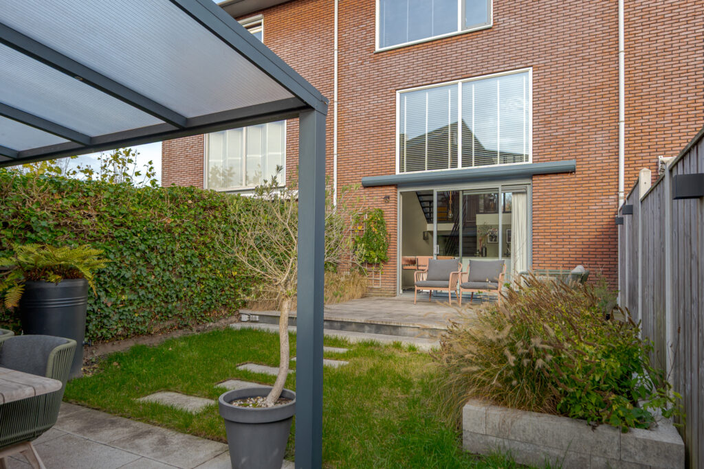 En dan de tuin, wat een fijne buitenruimte! Gelegen op het zuidwesten, met een groot terras, overkapping en achterom. Hier geniet u van de middag- en avondzon in alle rust.